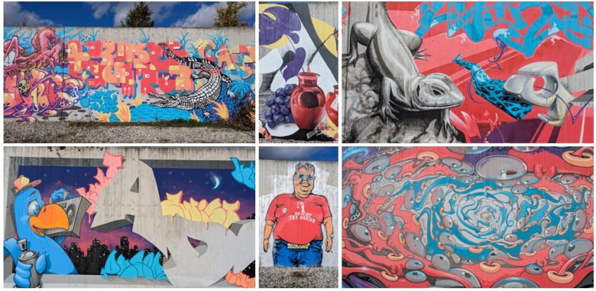 Hier in meinem Viertel wurde vor einigen Wochen eine Fläche für Street-Art Kunsterschaffende ausgewiesen, an der sie sich großflächig verwirklichen konnten. Die Aktion nannte sich Back to the Roots, die dazugehörige Fläche wurde von der Deutschen Bahn bereit gestellt und war vorher eine graue Lärmschutzwand in der Nähe der S-Bahn Stammstrecke. Sie ist jedoch nicht gerade mit Durchgangsverkehr gesegnet, ungeplant werden wohl die wenigsten dort vorbei kommen. Für mich war es jedoch nur ein kleiner Spaziergang am vergangenen Sonntag, um die neuen, bunten Kunstwerke zu betrachten.