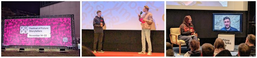 In der vergangenen Woche fand das Festival of Future Storytellers (FOFS) in München an der Hochschule für Fernsehen und Film (HFF) statt. Neben verschiedener Talks wurde in den eigenen Kinos eine ganze Reihe an internationalen Kurzfilmen gezeigt. Wir waren an einem Abend für zwei Kurzfilm-Blöcke am Stück da. So sahen wir insgesamt sieben Filme, wovon Dad’s Not Home vom polnischen Regisseur Jan Saczek wohl der eindrucksvollste war. Zwei Jungs versuchen die Demenz-Erkrankung ihres Vaters vor seinem Umfeld geheim zu halten. Saczek war auch vor Ort und stand nach dem Screening für eine kurze Q&A Session zur Verfügung (mittleres Bild). Ebenfalls gut waren That Summer I Got Accepted To University vom russischstämmigen Regisseur Aleksandr Belov, Nine Days in August von Ella Knorz und A Year of Marriage vom mexikanischen Regisseur Pablo Camargo López. Ich lasse die Titel einfach mal so stehen, unwissend, wie ihr sie auch ansehen könnt. Zusätzlich hatte ich mir auch noch einen Mittag im Büro frei geräumt und habe mir in der Zeit den Vortrag des zugeschalteten Dmitry Glukhovsky, Autor der Metro-Triologie, zum Thema World Building in Literature, Games & Film angehört (rechts im Bild). Insgesamt eine sehr nette Veranstaltung, die sich jedoch klar auf ein eher studentisches Publikum fokussiert hatte.
