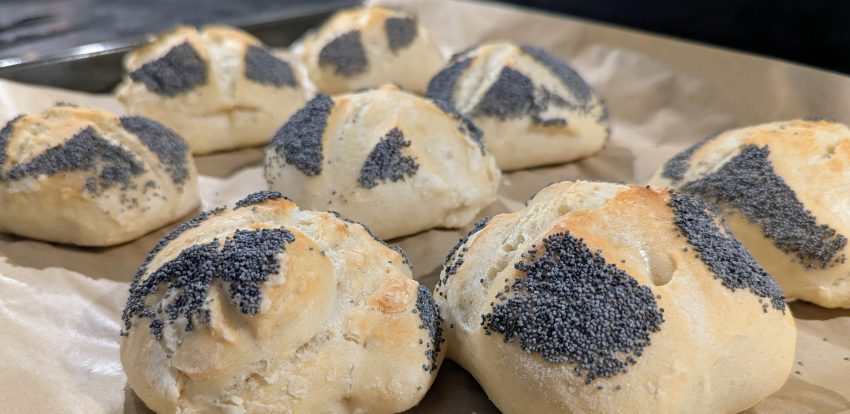 Seit einigen Monaten versuche ich mich immer mal wieder am Brötchen backen. Ohne fancy Rezept, alles ziemlich simpel. Und auch wenn Zeitaufwand und Ergebnis nicht in einem perfekten Verhältnis stehen – in der Zeit hätte ich zehnmal zum Bäcker gehen können – macht mir das doch ein wenig Spaß und ich freue mich darüber, wenn ich am Sonntagvormittag ein paar frische Brötchen auf dem Tisch habe. Der Rest wird weggetuppert und eingefroren. Denn jede Woche muss ich den ganzen Aufwand nun wirklich nicht betreiben.